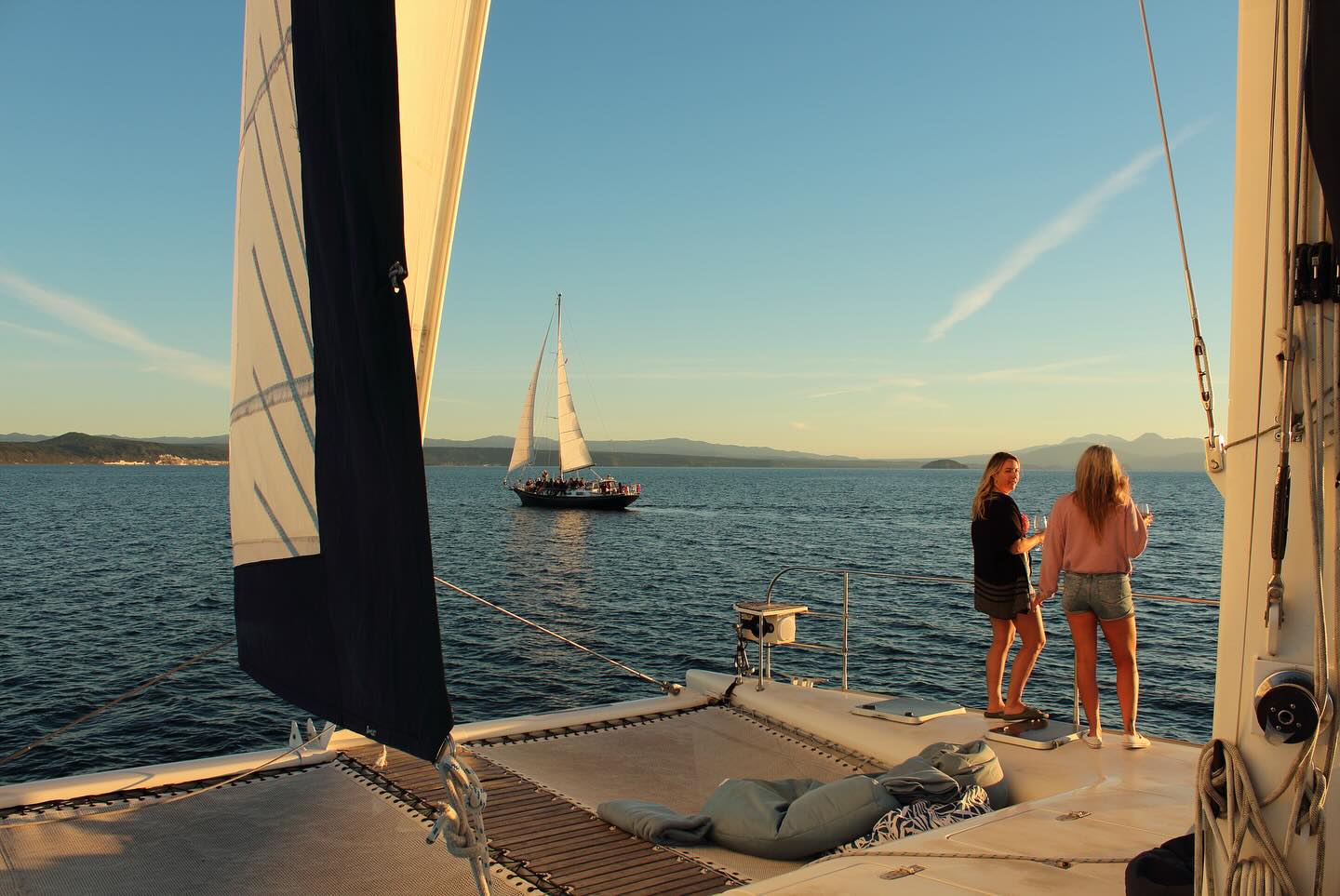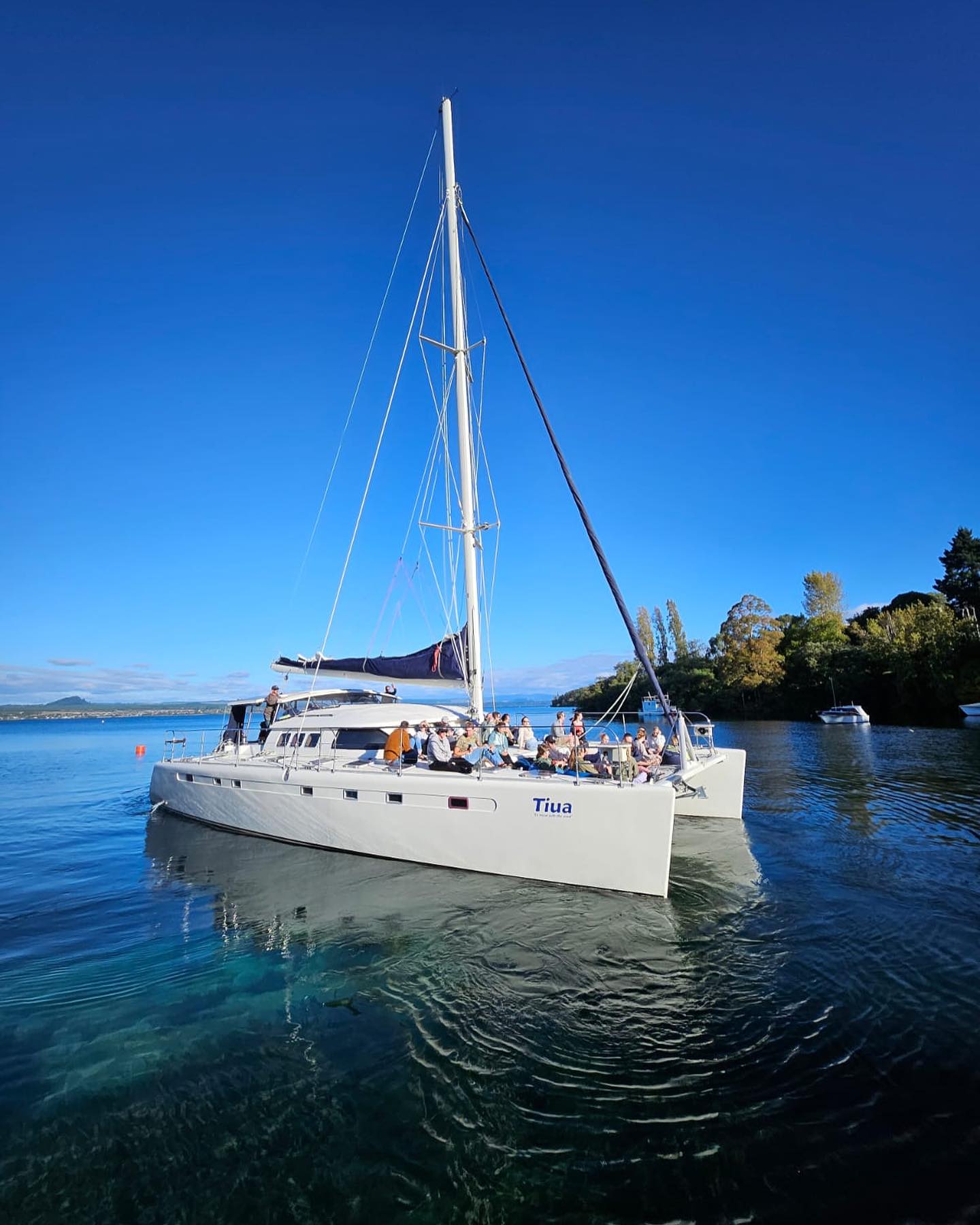Step aboard for an unforgettable evening on the lake with the First Class Cocktail Sunset Cruise - a luxury sunset sailing experience on the catamaran Tiua, combining handcrafted cocktails, delicious food, and famous Taupō sunset!